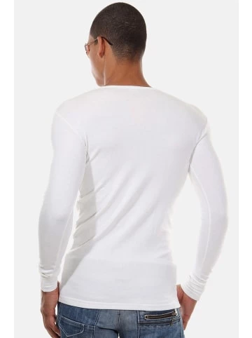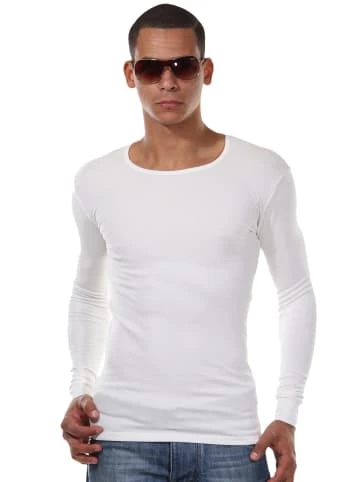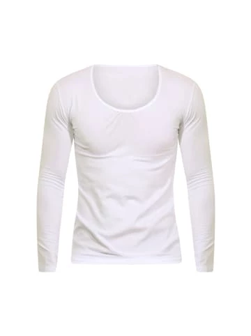 Ein modernes und eng anliegendes Langarmshirt mit Rundhalsausschnitt aus thermoaktivem Stoff. Der hochwertige Thermal Polyester transportiert die Feuchtigkeit nach außen und hält die Körperwärme im Inneren. Das hautfreundliche und atmungsaktive Material ist pflegeleicht und angenehm weich. So kühlt der Körper nicht aus und man bleibt länger fit und aktiv. Der Stoff passt sich dem Körper an, schränkt die Bewegungsfreiheit nicht ein und gibt ein angenehmes Wärmegefühl. Durch den Anteil an Elasthan behält das Langarmshirt auch nach dem Waschen die Form. Wahlweise in Schwarz oder Ecru lieferbar.